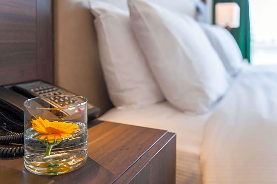Sleep in this spacious room and enjoy the deluxe amenities. Stretch out and relax on the two single Hilton Serenity beds, by enjoying complimentary internet access and 49" TV, relax in the cozy armchair with ottoman and black-out curtains facility. Other benefits include access to the Sana Hiltonia Health and Fitness Spa with complimentary use of the indoor pool, hot tub, steam room, hamam, sauna and gym.